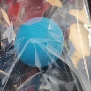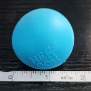 Nee Doh branded stress ball in a vivid blue color. Soft, squeezable sensory toy. Simple and playful design with embossed logo.