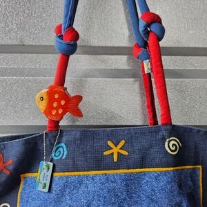 Keywords: fish tote bag, nautical tote, beach bag, canvas tote bag, novelty tote bag, colorful tote bag, fish purse, summer tote, vacation bag, beach tote, shoulder bag, everyday bag, unique tote, artisan bag