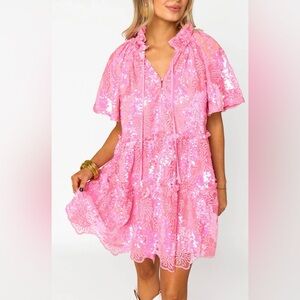Pink Sequin Lace Dress