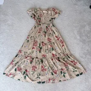 Keywords: anthropologie dress, anthropologie somerset dress, somerset maxi dress, floral maxi dress, boho maxi dress, cottagecore dress, tiered maxi dress, khaki floral dress, cotton maxi dress, flowy dress, romantic dress, prairie dress, summer maxi dress, vacation dress, brunch outfit dress, womens size small dress, neutral floral dress, feminine maxi dress