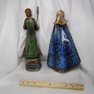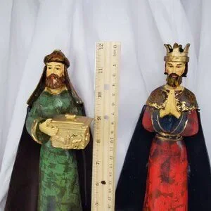 4 Hand-Painted Polystone Nativity Figurines Metal Capes Made in Italy 12" Tall