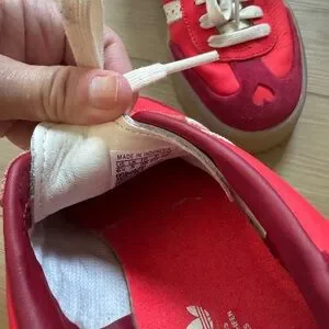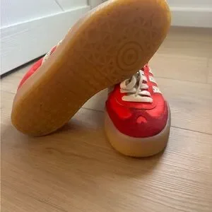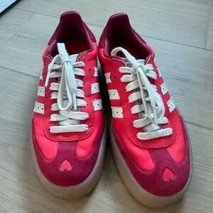 Bold red Adidas Samba sneakers with classic white stripes. Ideal for everyday style.