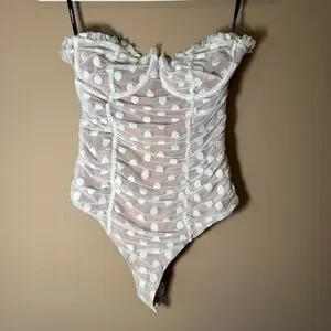 MAJORELLE WYN bodysuit White Polka Dot Ruched small