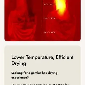 Forget heat damaged hair. The Zuvi Halo uses patented LightCare™ technology to dry the surface of your hair, protecting hair moisture within the hair shaft. The result? Your locks are up to:
