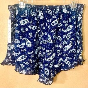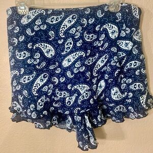 NWT Skorts Large Patrons of Peace Ruffle Shorts Flowy Skirt Blue White Paisley
