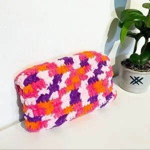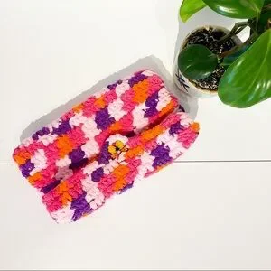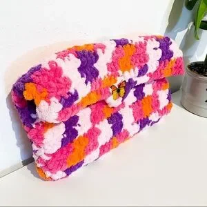 Very 90s VINTAGE Soft Fluffy Travel Clutch With Butterfly Clasp