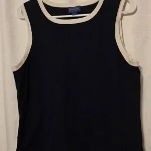 Stylish navy tank top with cream trim. Perfect for casual wear. #27