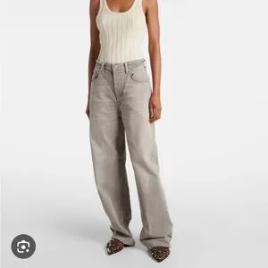 Stylish wide-leg jeans from Citizens of Humanity in a light gray hue—perfect for versatile, everyday wear. They look especially cute with a chunky cuff!