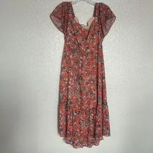 - beautiful, coral off shoulder dress. No size tag, so please look at measurements, but I would say it is a small.