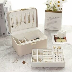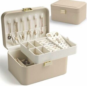 Kamier 2-Tier Beige Jewelry Box with Mirror