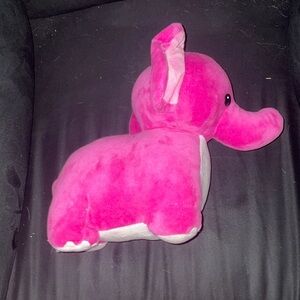 Adorable pink elephant plush toy with white accents. Perfect for cuddling.