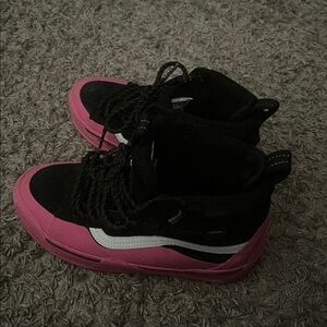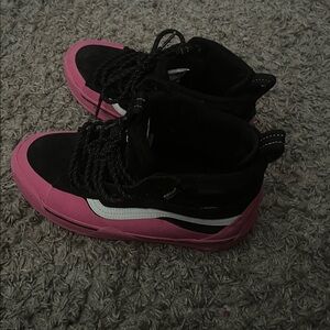 Vans Women's Black and Pink High-Top Sneakers Size 6.5