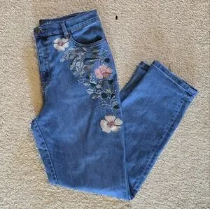 Gloria Vanderbilt Amanda style jeans with floral Embridered design.