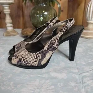 Tahari Snakeskin Patterned Slingback Heels Sexy Baddie Office Size 8.5