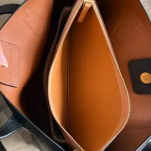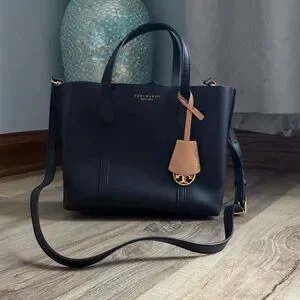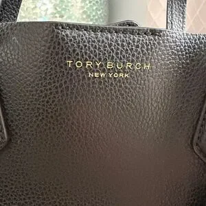 Tory Burch Black Leather Satchel with Tan Accent Tag