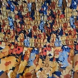Smocked Waist Floral Maxi Dress Blue & Tan