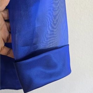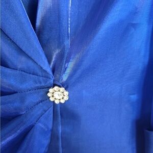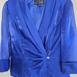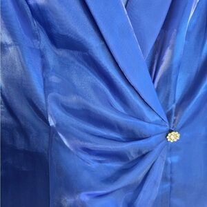 Alex Evenings Satin Jacket Woman Small Blue Collared 3/4 Sleeve Exellent