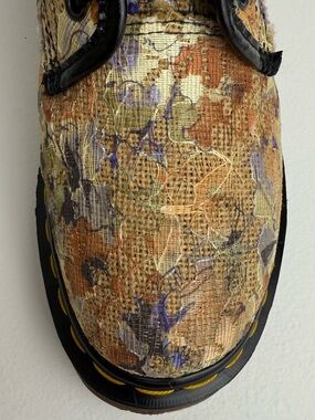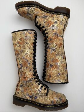 Vintage Dr. Martens England Burlap Floral Lace Fabric Tall Boho MIE Boots UK 5