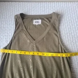MWL Breeze Drawstring Romper Olive Green Sleeveless Women's Size M. Preowned. Minor wear. Stylish olive green sleeveless romper with a drawstring waist. Style# NA564. Measurements Included In Pictures. Smoke Free Home. Good Condition. Offers Welcome.