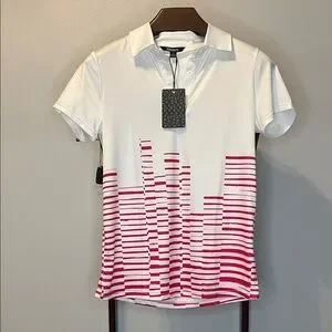 Acegolfs Women’s Stylish White Polo Shirt with Red Stripes