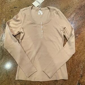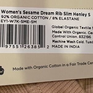NEW! Pact Sesame Dream Rib Slim Henley Long Sleeve Top Size Small NWT!