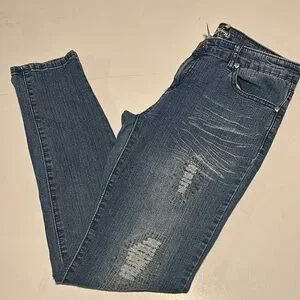 Kaba distressed low rise blue jeans Inseam length 30.5” F