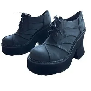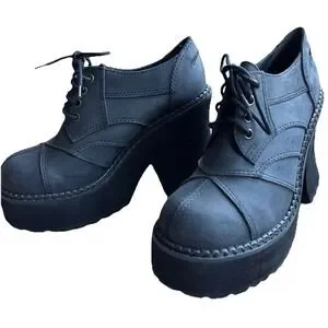90S Deadstock Leather Platform Oxford Shoes SZ 8 BatWing Chunky Whimsigoth Y2K