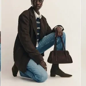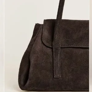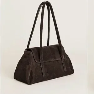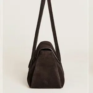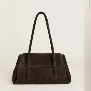 Suede shoulder bag with a refined rectangular shape. Slim double straps for easy wear. Front flap detail adds subtle structure. Minimal, versatile design for everyday use.