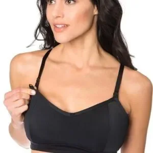 Set of five wireless nursing and sleep bras by Motherhood. Soft stretch fabric offers gentle support. Clip-down straps for easy nursing access. Smooth, seam-friendly design for layering.