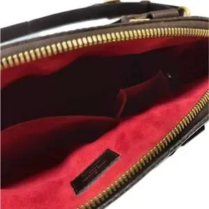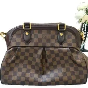 Classic Louis Vuitton shoulder bag in Damier Ebene canvas. Rich brown leather trim with subtle pleating. Gold-tone hardware accents. Top handles and structured frame. Timeless, versatile design for everyday wear. More pictures coming soon!