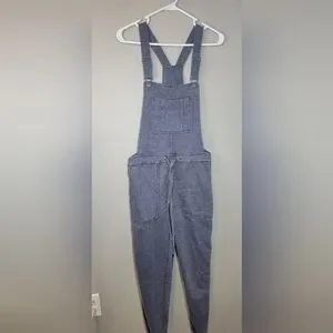 Casual sleeveless jumpsuit with front patch pockets. Drawstring waist for adjustable fit. Soft textured knit with visible seam details. Easy pull-on style for everyday wear.