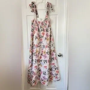 House of Harlow 1960 Floral Linen blend Bow Tie Shoulders maxi Dress