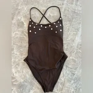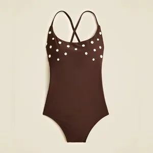 NWT J. Crew Button-trim scoopback one-piece swimsuit - size 6 and 8 - brown