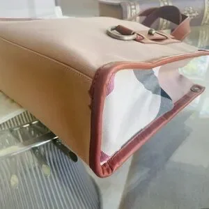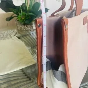 Burberry Tan Canvas Nova Check and Leather Tote, comes with dust cover.