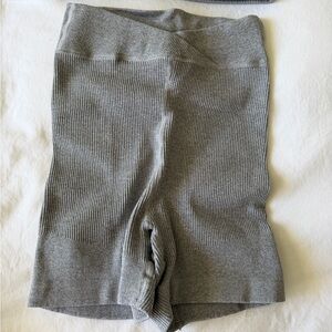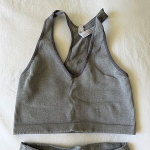 Free People Seamless Gray Ribbed Workout Set - Crop Top & High-Waist Shorts