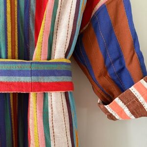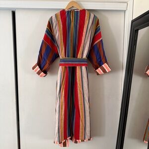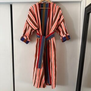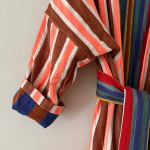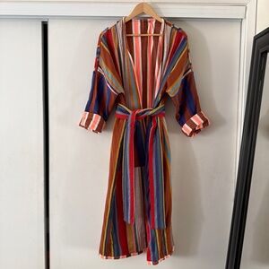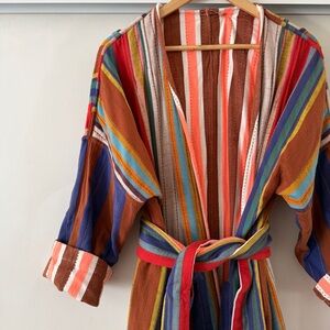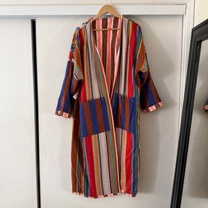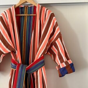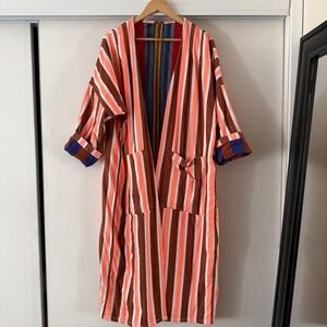 Reversible, quilted, pockets on both sides! Size small - I purchased larger so i could easily pull it closed and tie with belt. I think this is VGUC, marking as good condition just to be safe. Barely worn, just at home.