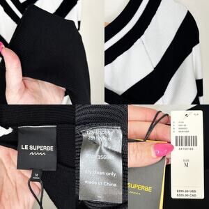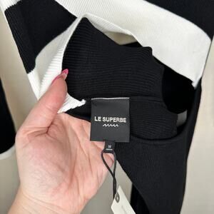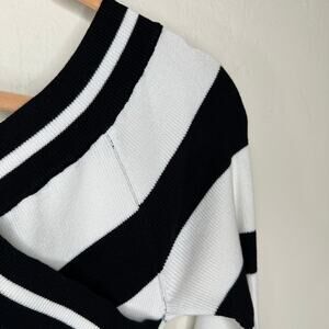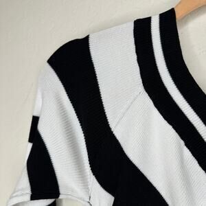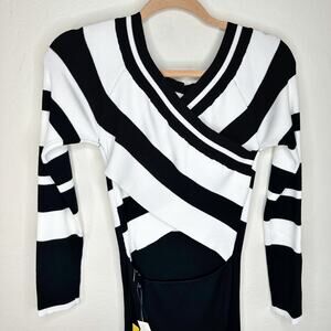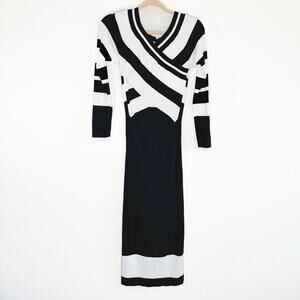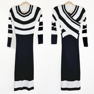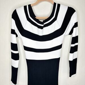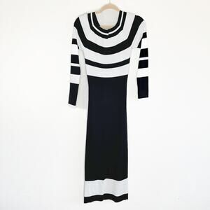 Le Superbe Anthropologie Stretchy Black White Stripe Fall in Rib Knit Long Sleeve Cut Out Back Midi Bodycon Dress