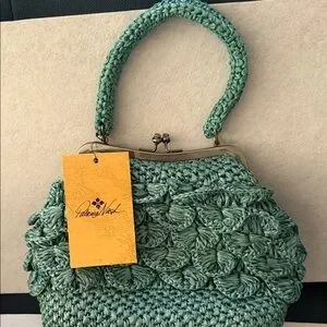 Elegant teal woven clutch with unique texture. Perfect for adding style to any outfit.