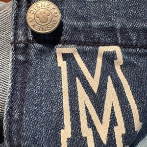 Charming Mickey Mouse overalls with dual-tone design. Features adjustable straps and playful lettering. Ideal for fun outings.