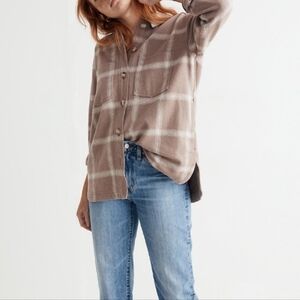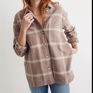 Madewell Kentwood Shirt Jacket Shacket Windowpane Flannel Tan Cream M