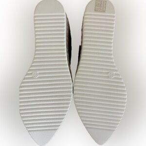 Stylish black woven platform espadrille flats with a cushioned insole for all-day comfort. Lightweight wedge sole adds subtle height while maintaining stability. Versatile design pairs easily with casual or dressy outfits. New as pictured. In Size 8.5 (EU9).
