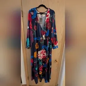NWT Eloquii Maxi Multicolor Floral Long Sleeve Dress