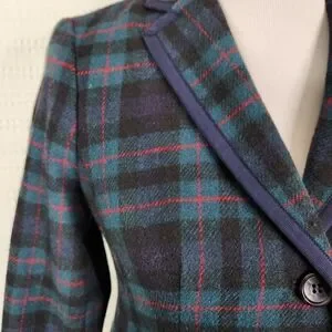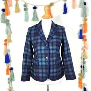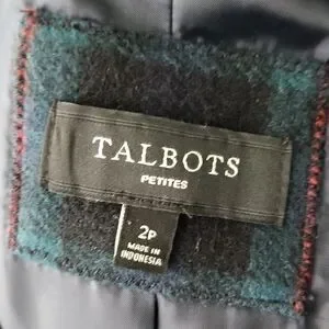 Multicolor plaid two button blazer from Talbots in a wool blend in excellent condition.