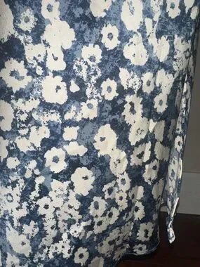 Step out in style with this elegant floral maxi dress. The navy and cream pattern adds a touch of sophistication, making it perfect for any event. Enjoy a flattering fit and a chic slit for added elegance.