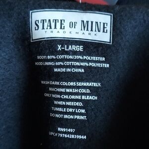 NWT State Of Mine North Carolina The Tar Heel State Fleece Lined Hoodie Mens XL