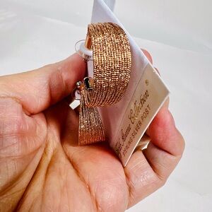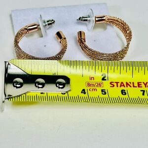 Description: Elegant Fifth Avenue Collection "Mini Rays" hoop earrings in a beautiful rose gold tone. Features a textured, multi-strand design with sterling silver posts. Brand new with original tag. Perfect for everyday wear or dressing up any outfit.
