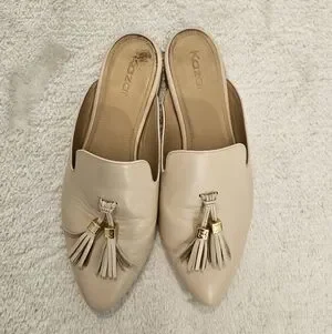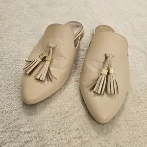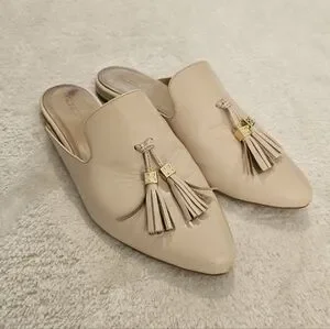 Beige Tassel Leather Mules Size 9 Tan Neutral Business Casual Minimalist Work