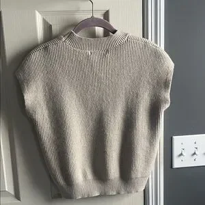 Chic beige sweater with bold black stripes. Crew neck design. Versatile and stylish.