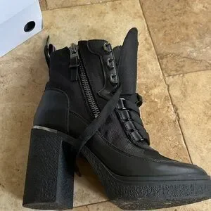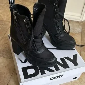 DKNY Black Lace-Up Chunky Heel Ankle Boots