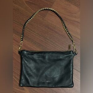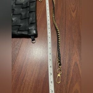 Vintage Anna Paola black leather purse bag Gold chain woven black leather soft